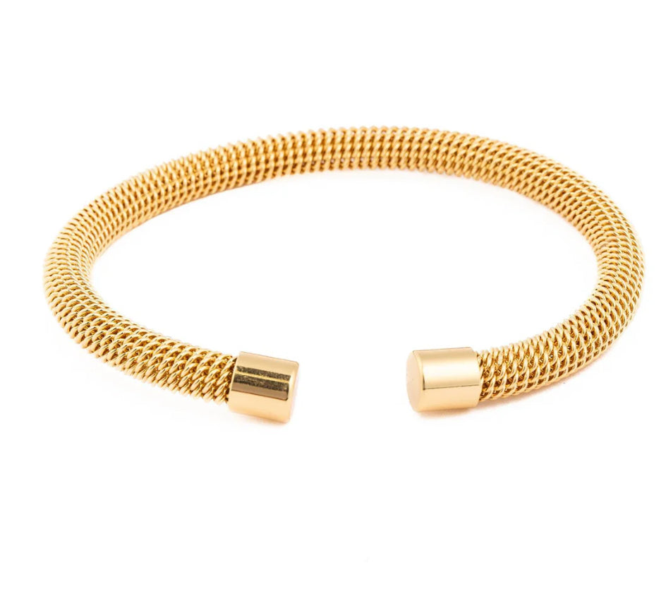 Brass plated gold round cuff bracelet, 6MM, adjustable