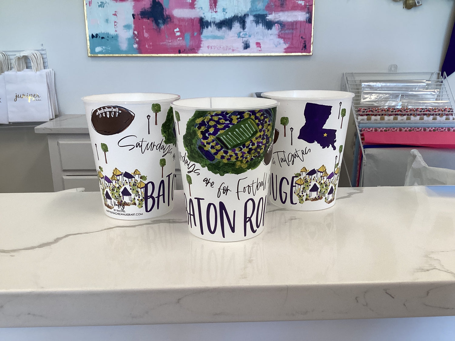 Drink from the cutest cups around! Reusable sets of 6 cups. Dishwasher safe!
