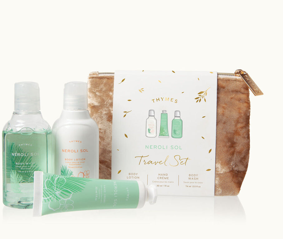 On-the-go luxury is complete with this TSA-approved Petite Body Wash, Petite Body Lotion, and Petite Hand Crème complete with a velvet cosmetic bag.
